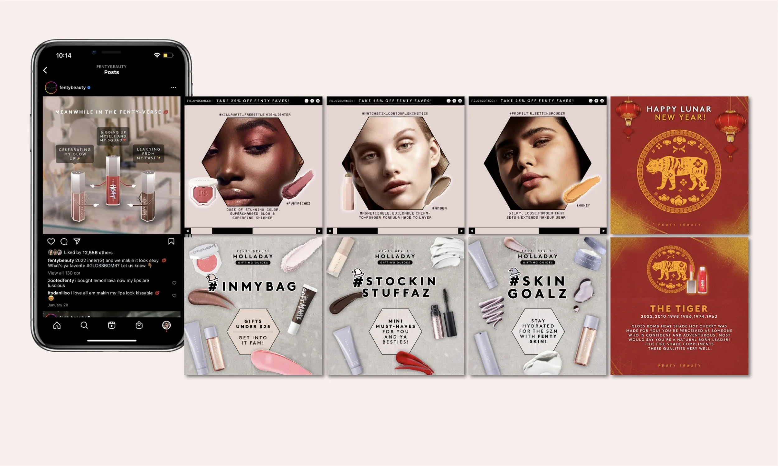 Includes experience in leading and supporting content creation, briefing, on-set production, and editing across Fenty Skin + Fenty Beauty’s socials.